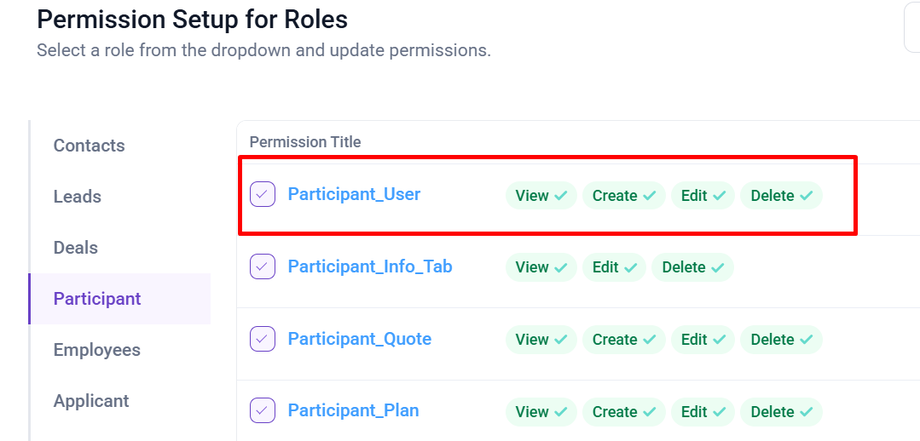 - To delete the participant details you need to have Permission : Participant > Participant_User >> Delete : Yes