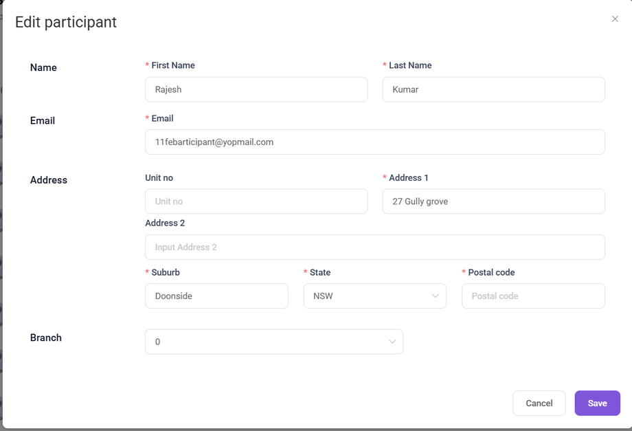 After Clicking the Edit icon, a form will appear displaying the participant current details.