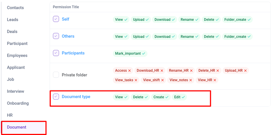 - To view the Document Type Section you need to have Permission : Document > Document Type >> View : Yes