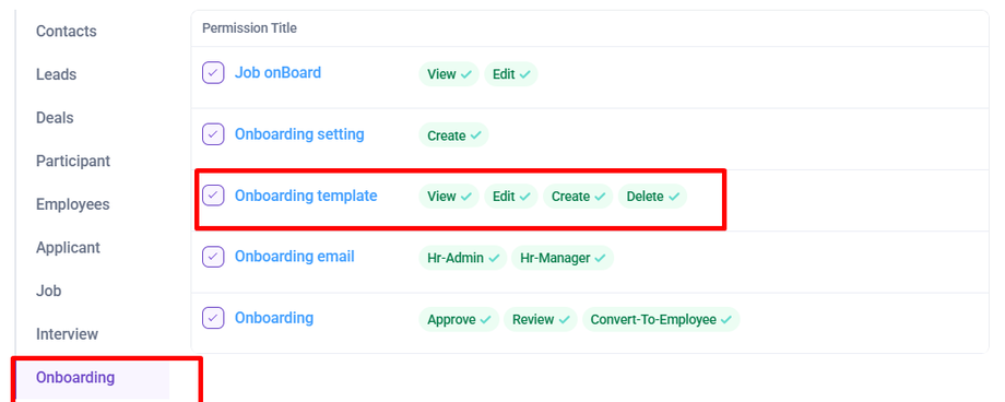 - To View the Onboarding Template Page You need to have Permission : Onboarding > Onboarding template >> View : Yes