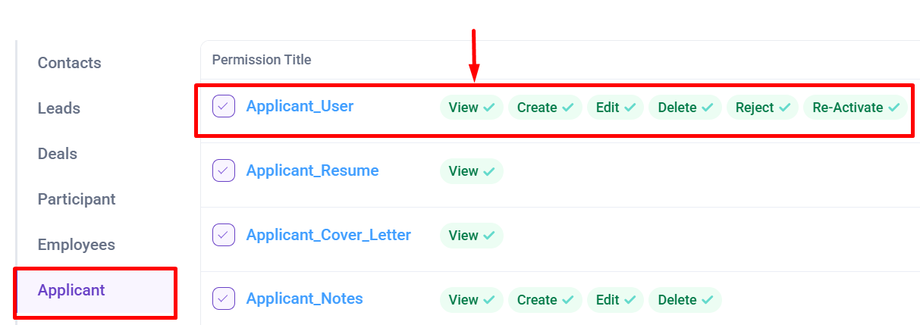 Note : To view this menu you need to have Permission : Applicant > Applicant_User >> View : Yes