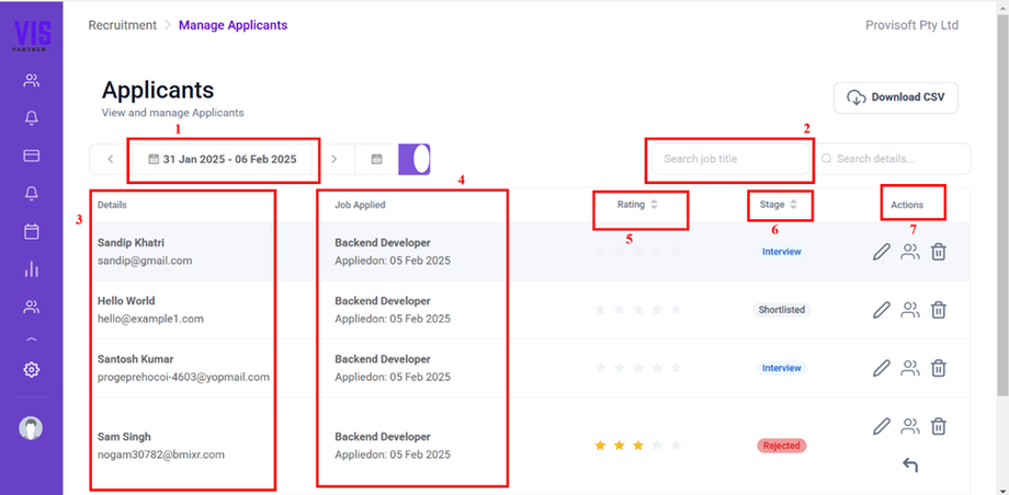- Rating: This Column Shows the rating of the applicant provided by the recruiters based on their qualifications, experience, or interview performance.