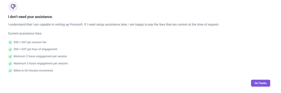 If you don't need assistance in setting up your system. You can Simply Click on the No Thanks Button.