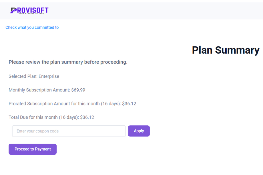 Once you've reviewed the details, click Proceed to Payment to move forward for payment.