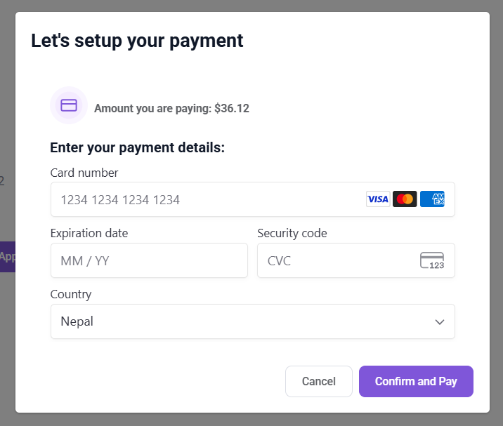 You can add your card details here. After filling all the details you can click on the Confirm and Pay Button to complete the Registration process.