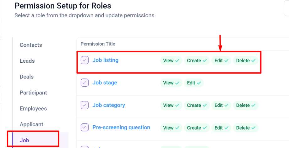 Note: To edit a job application you must need to have following Permission : Job > Job listing >> Edit : Yes
