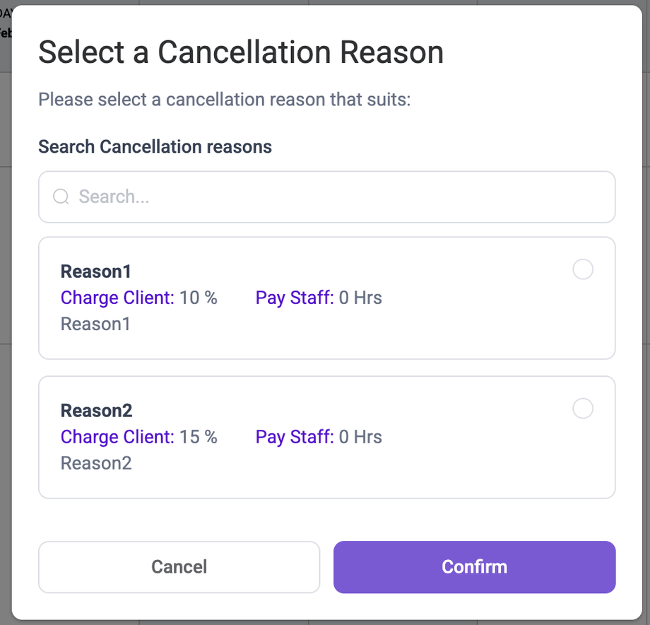 To process this => the system will take the percentage in the cancellation reason into account and deduct it from the full shift value minus transportation cost (if any).