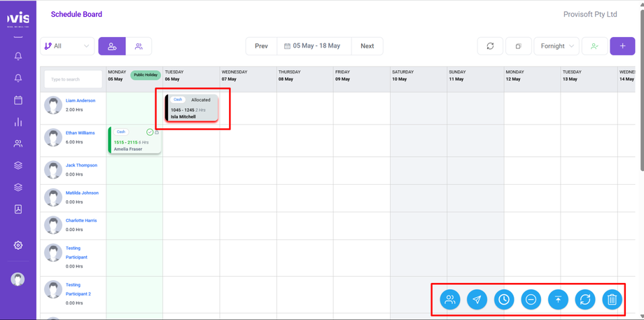 After allocating a shift to a worker, it need to be published so the worker are notified. To Publish a Shift, Single Click on the shift shows the set of action button are shown.