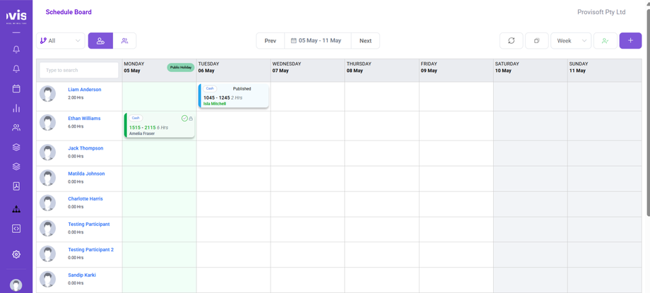 - Click on the + Button at the top right side of the Schedule Board to create a new shift.