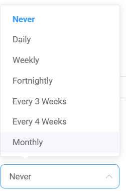 You will then see customization options. Fill them out according to your recurring shift’s needs. First, set Recurrence. Choose between Daily, Weekly, Fortnightly, Every 3 Weeks, Every 4 Weeks and Monthly.