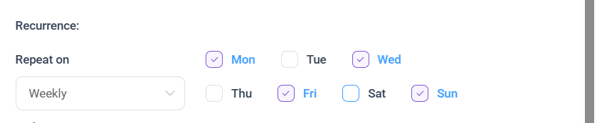 - After Selecting a Repeat On, You will need to Check the days Which answer the question : Which day Should it occur ?